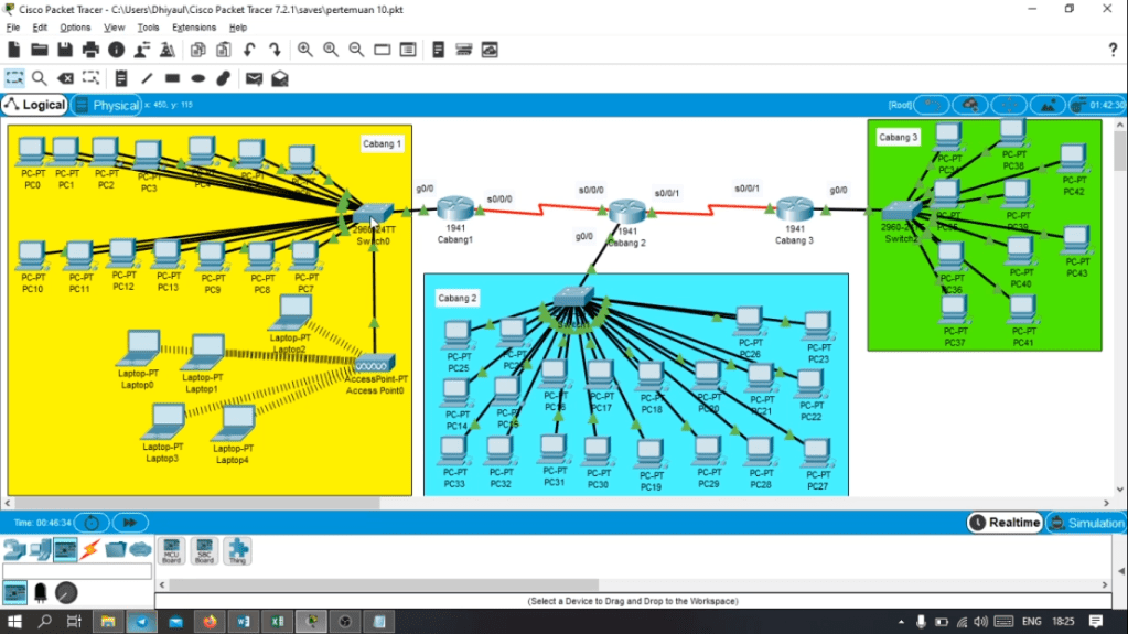 Perusahaan XYZ memiliki 3 kantor Cabang. Pada kantor cabang 1 memiliki 14 komputer yang terhubung menggunakan kabel serta terdapat 5 Laptop yang terhubung menggunakan media Wireless.